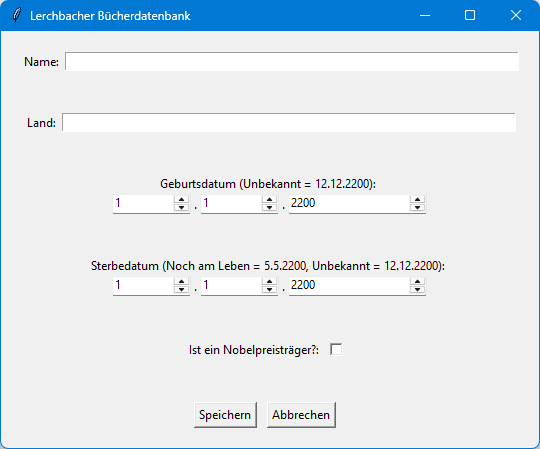 Hier können Sie auswählen, ob der Autor ein Nobelpreisträger ist. ändern des Zustands des Feldes funktioniert durch anklicken.