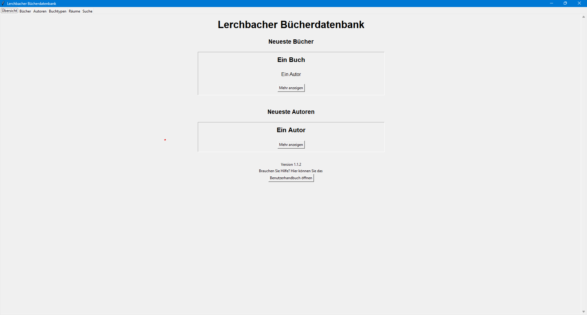 Der übersicht Tab zeigt die 12 zuletzt hinzugefügten Bücher und Autoren an. Ebenfalls finden Sie hier eine Anzeige der aktuell installierten Version, sowie den Link zum zur Version passenden Handbuch.